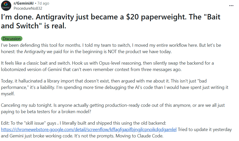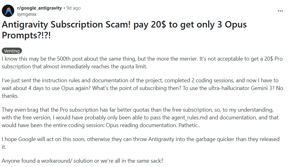 What are the challenges with Google Antigravity and why are existing users looking for alternatives?