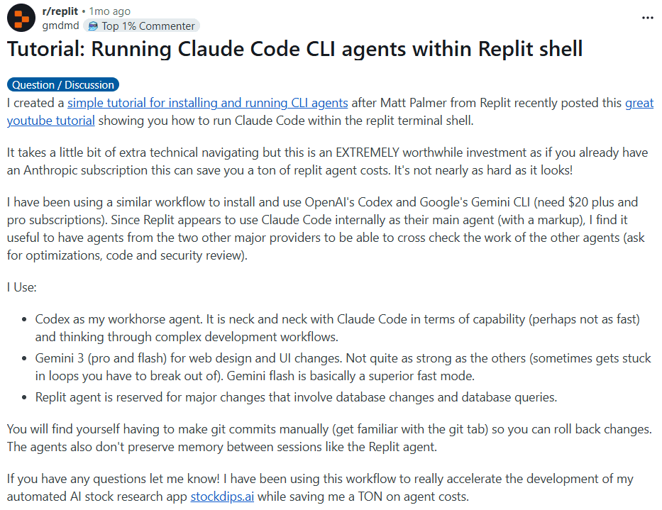 A user shared a tutorial on running Claude Code CLI agents inside Replit.