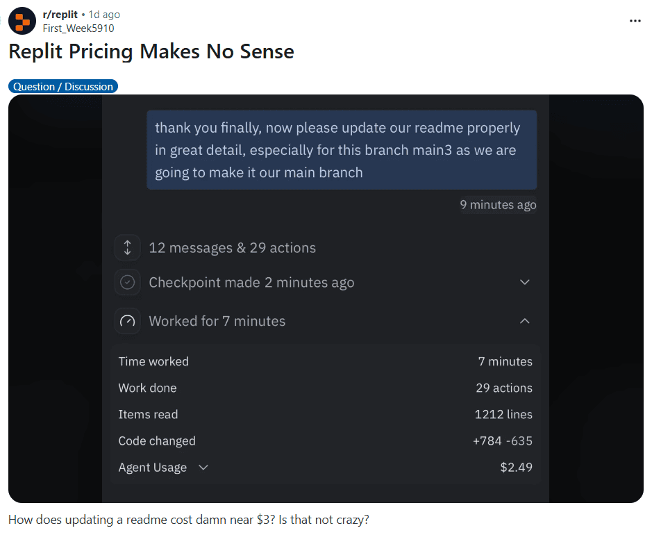 Users expressed confusion around Replit’s pricing tiers and credit usage.