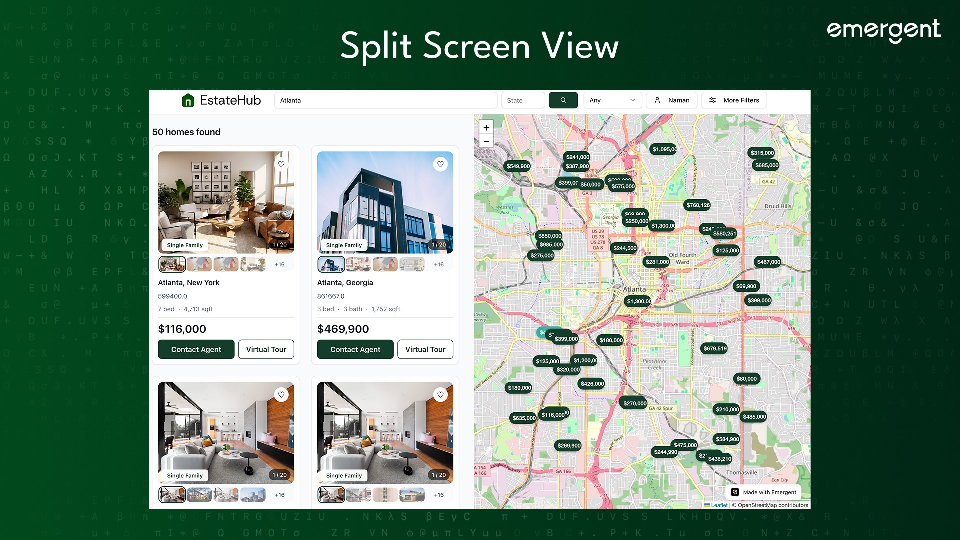 By the end of this tutorial, you’ll understand how to use Emergent to build a real real-estate discovery product, not a wireframe or demo.