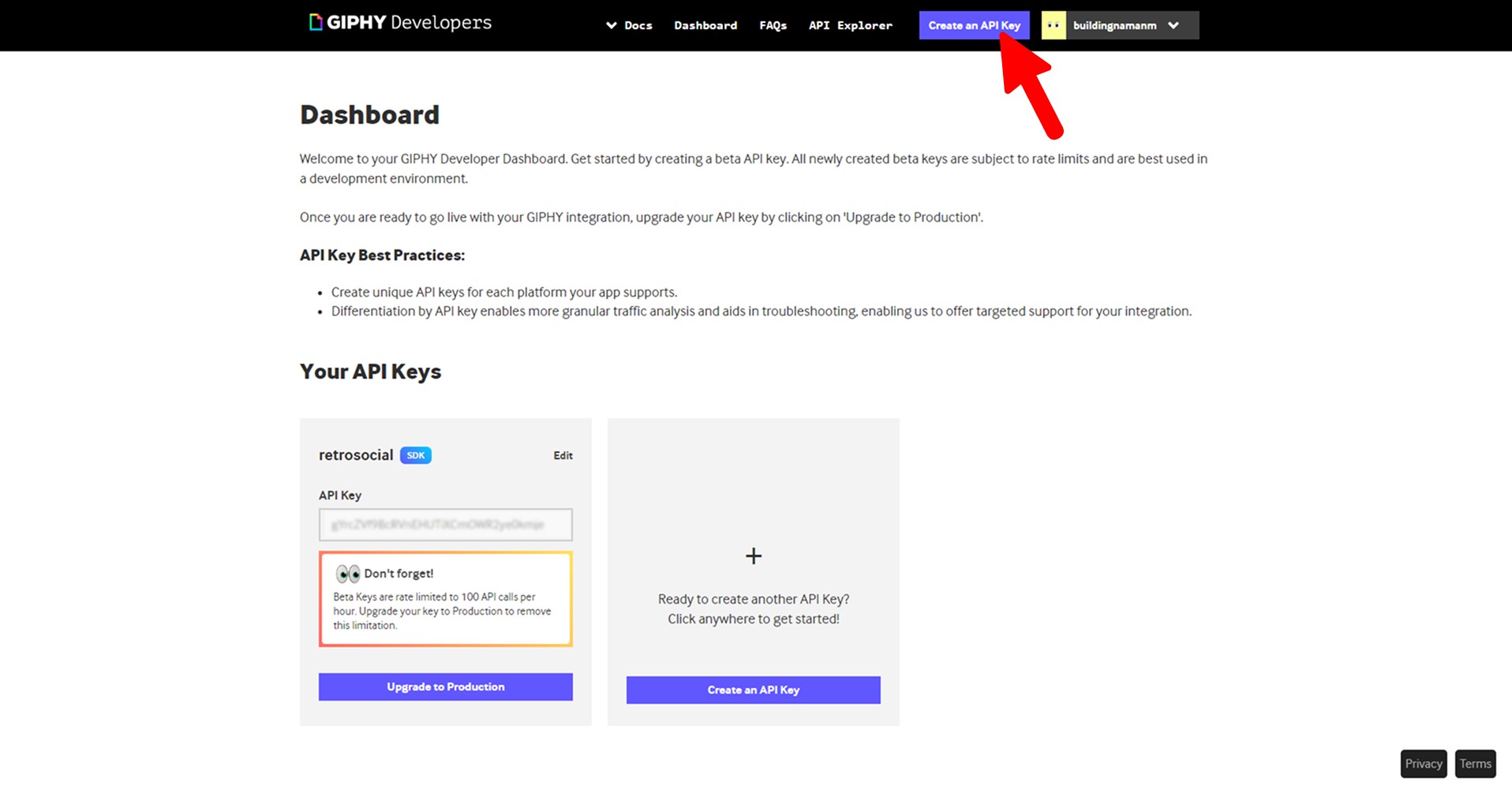 You can apply for a GIPHY API key at https://developers.giphy.com/dashboard/