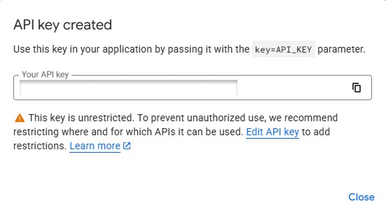 AIza...)Copy the API key immediately and save it somewhere safe