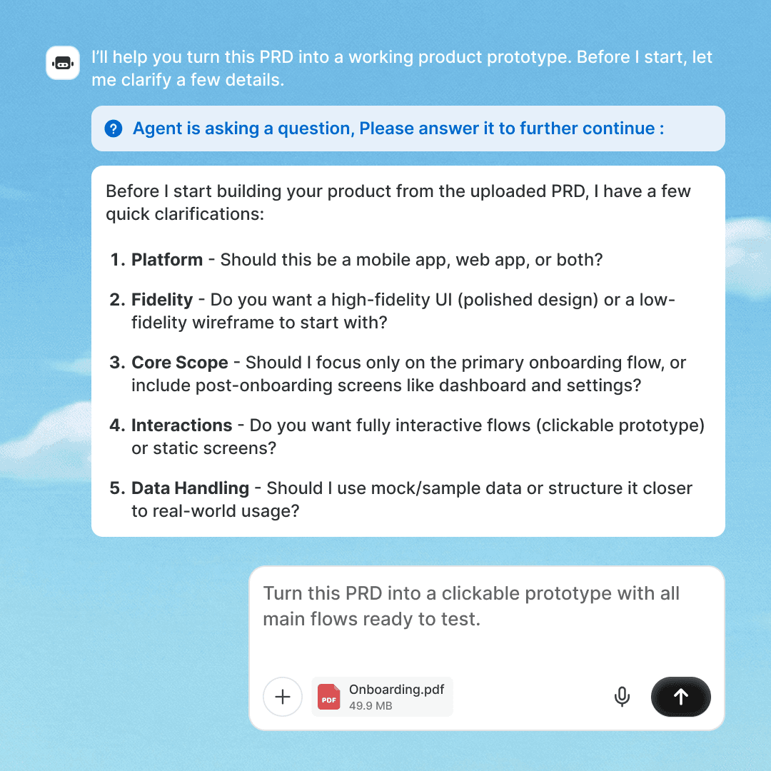 Build interactive prototypes from plain text, test with users, and deliver production-ready builds in hours, not months.